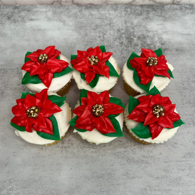 Gold Centered Poinsetta Cupcakes