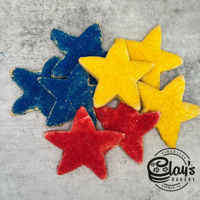 Our old fashioned sugar cookies topped with colorful sugar in star shapes. A perfect dessert for your graduation party.