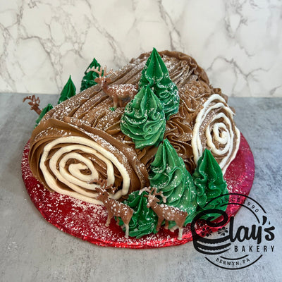Yule Log Cake - Reindeer and Trees